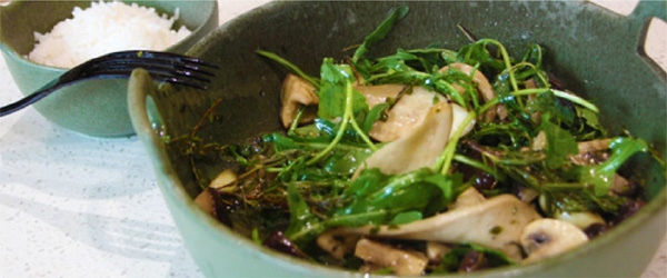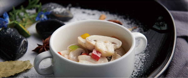 2再加入各种香草,翻炒一下,白蘑菇易熟,不用炒太久,香气四溢,即可盛出。