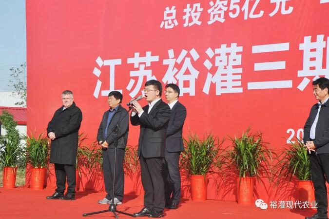 10月15日,在一片热烈、喜庆和庄重的气氛之中,上午8点18分,江苏裕灌三期项目开工典礼盛大举行,参加此次典礼的有:灌南县委书记李振峰,灌南县委副书记、县长任瑜,灌南县委常委、副县长袁丽霞,裕灌集团董事长兼总裁黄健光,裕灌集团常务副总裁齐延全,裕灌集团副总裁兼财务中心总经理孙玉刚,裕灌集团副总裁兼生产管理中心总经理谭戟,裕灌集团副总裁兼人事行政中心总经理马剑星,及政府各职能部门、裕灌各分子公司、中心负责人等相关领导共同见证这一激动人心的时刻,现场烟花齐放、礼炮轰鸣。