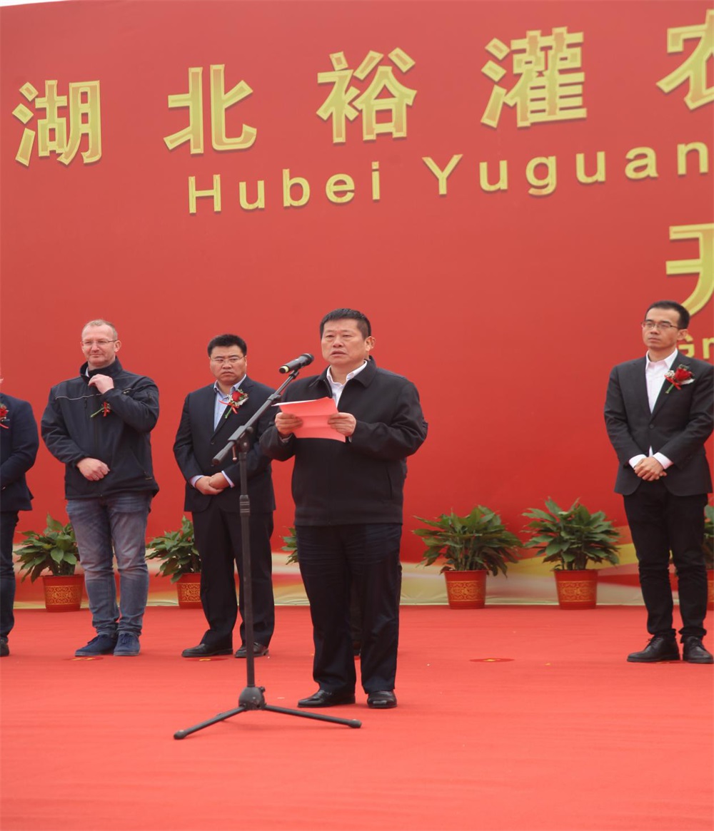 裕灌集团常务副总裁齐延全先生首先代表集团董事长黄健光先生致辞,对各位领导及各位来宾的莅临表示热烈欢迎,并对裕灌集团及湖北裕灌项目进行概述。湖北裕灌项目,建设周期10个月,项目建成后将实现新增双孢蘑菇产能6万吨、农业循环经济原料利用20万吨、产值8亿元。后期配套深加工项目全部建成后,裕灌公司将实现年产值10亿元、年出口创汇2千万美元以上,带动就业1500人以上。