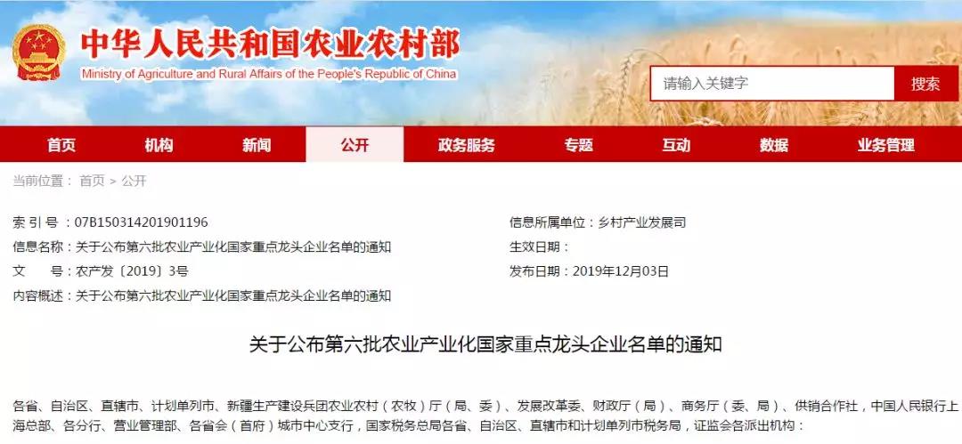 12月3日,中华人民共和国农业农村部官网发布消息,公布了第六批农业产业化国家重点龙头企业名单,江苏裕灌现代农业科技有限公司榜上有名,成为灌南县首家国家级农业龙头企业。