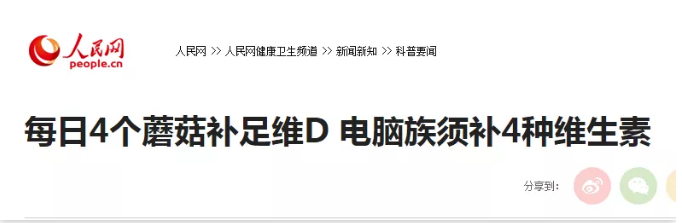 人民网刊发文章《每日4个蘑菇补足维D,电脑族须补4种维生素》引发人们对健康的思考。