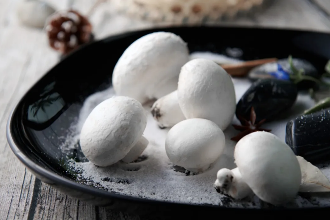 2、看颜色。好的蘑菇菇盖呈白色或灰色,菇柄为白色。