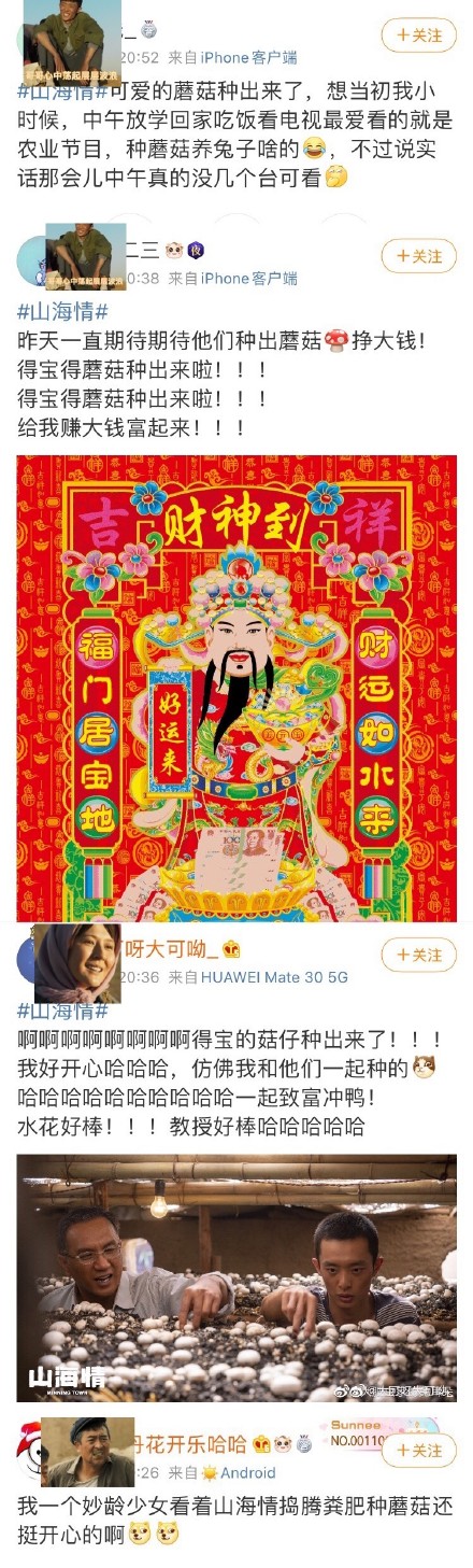 剧中,黄轩饰演的马得福为了带领村民致富,顶着种种压力,鼓励、帮助弟弟马得宝种起了白蘑菇,而自从得宝种白蘑菇之后,荧幕前的观众,也开始了"云养菇"之旅。