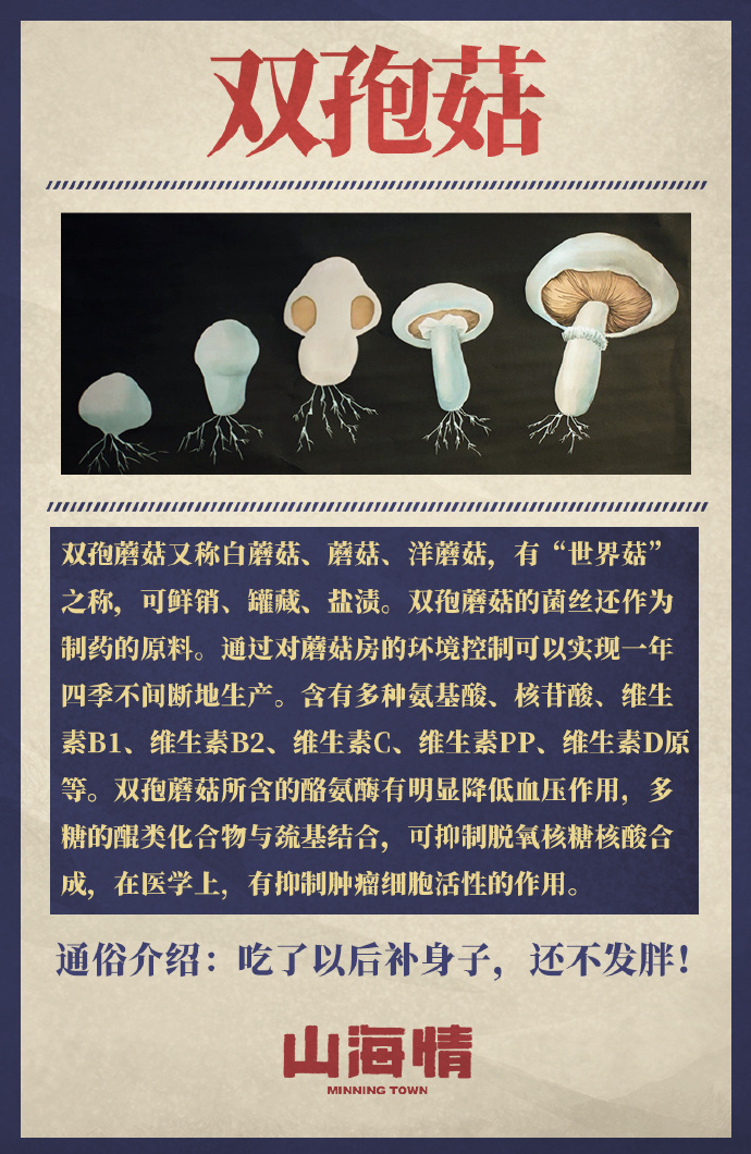 也有观众问,为何要种白蘑菇呢?种其他的东西不行吗?剧中给了答案:周期短、见效快、赚钱快。为了给观众普及白蘑菇知识,剧组还贴心地做了一张说明海报。