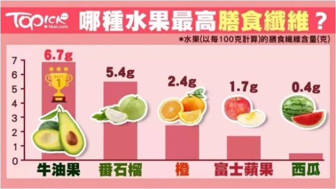 水果:水果含2%左右,其中,牛油果、番石榴等某些出众的水果更是高达5克以上,而且很多膳食纤维都藏在水果皮里,去皮之后其流失量可达24%-46%,所以可以的话,洗净果皮一起食用就最好啦!