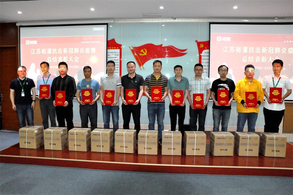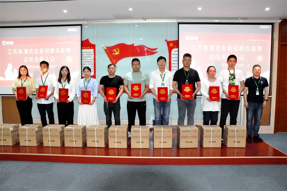 2022年5月26日下午,江苏裕灌抗击新冠肺炎疫情总结表彰大会在综合楼二楼培训室举行。裕灌总裁肖非出席表彰大会并为44位防疫志愿者们颁奖,裕灌各部门负责人及部分员工代表参加了大会。