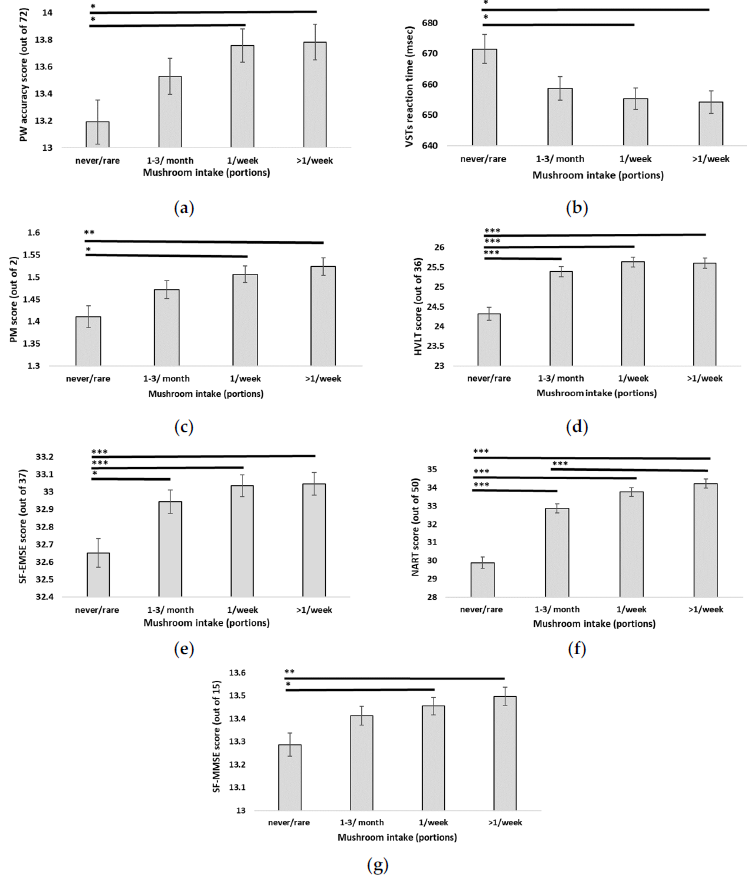 此外,研究人员调整了水果和蔬菜摄入量,发现蘑菇摄入量仍然与更好的认知表现相关。